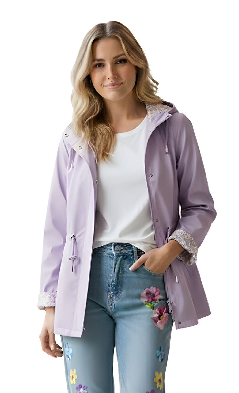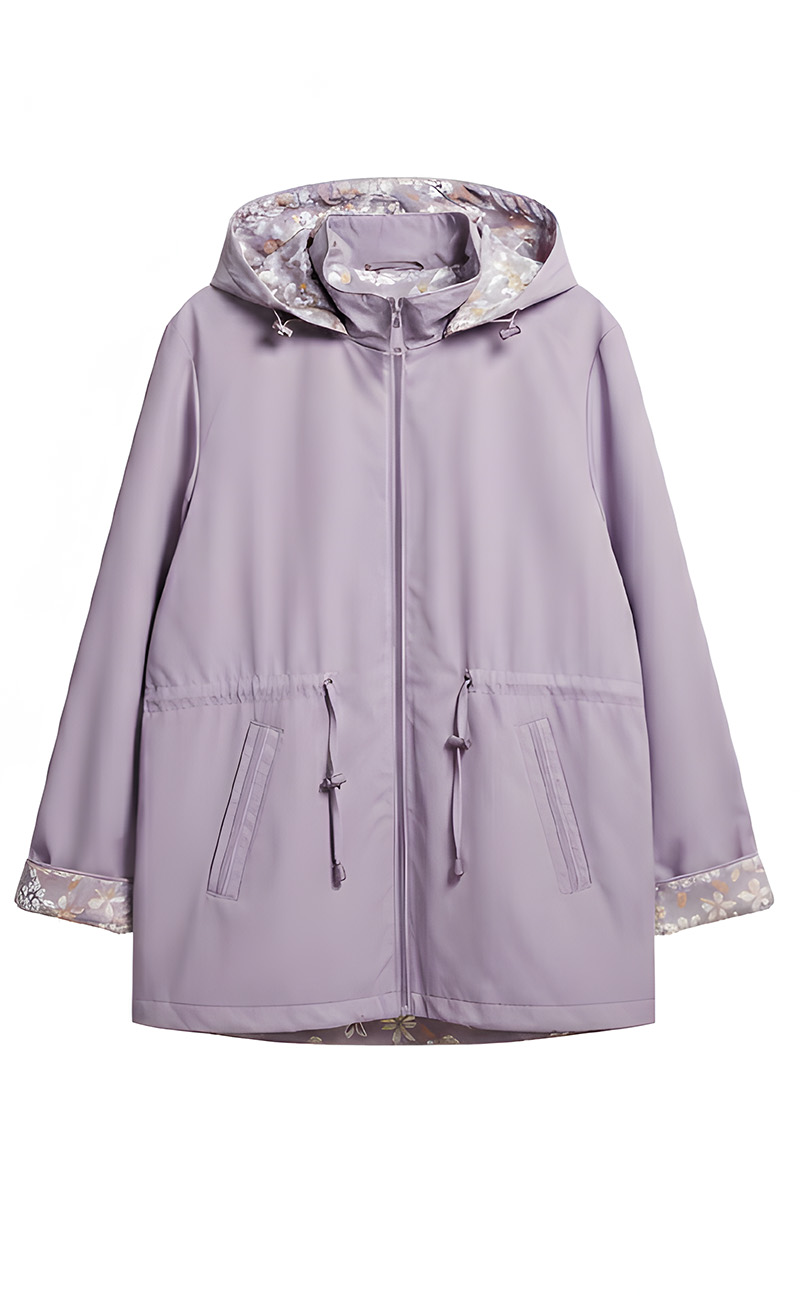 Wendejacke mit Blumenprint. Kapuze abnehmbar.