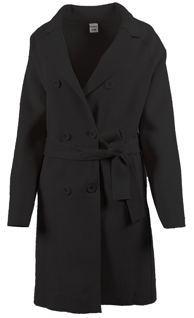 Mantel mit Reversekragen. Knopfleiste und Gürtel.