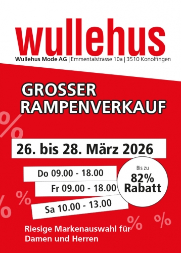 Rampenverkauf! Vom 26.–28. März 2026 gibt’s radikale Rabatte direkt ab Lager. Vorbeikommen, stöbern und kräftig sparen. Nicht verpassen! ✨